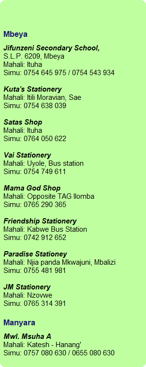 Kwa wanafunzi wa kidato cha tano wanatakiwa kurudisha shuleni fomu za maombi zilizokamilika kupitia anuani ya Posta ambayo ni Shule ya Sekondari Jifunzeni, S.L.P 6209, Mbeya au kwa barua pepe (baada ya kuskani) jssp2008@yahoo.com